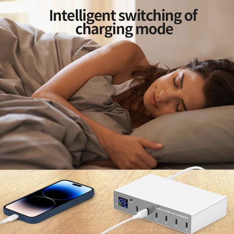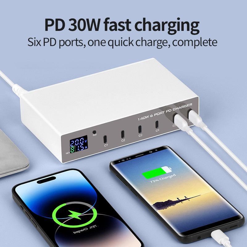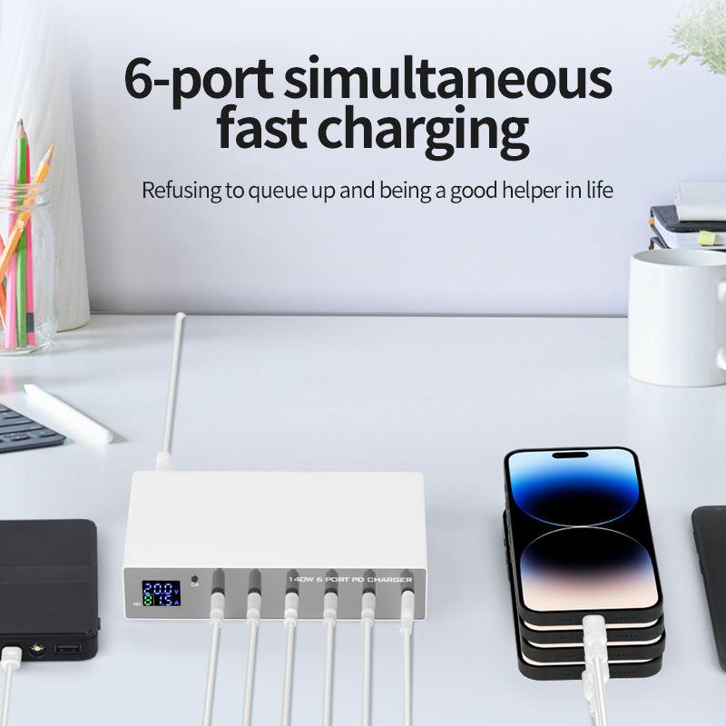 6-Port 140W PD 3.0 Smart Multiport USB C Charger Portable Size USB Charging Station with 20W USB C for Each Port for Cellphones